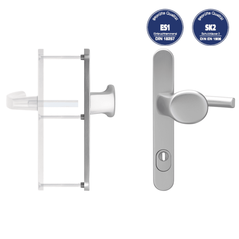Klamka drzwiowa z gałką KGT50 PZ92/216 ZA ES1 z osłoną wkładki TS 77 – 82 mm