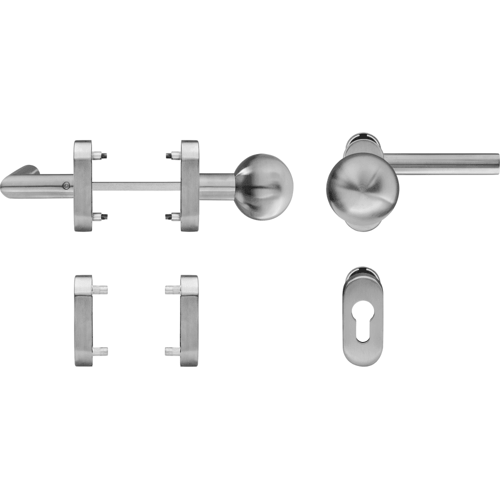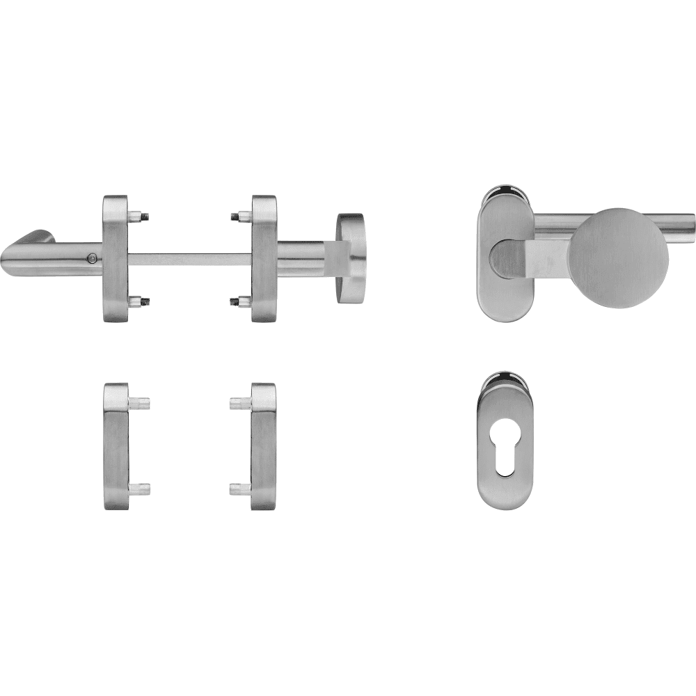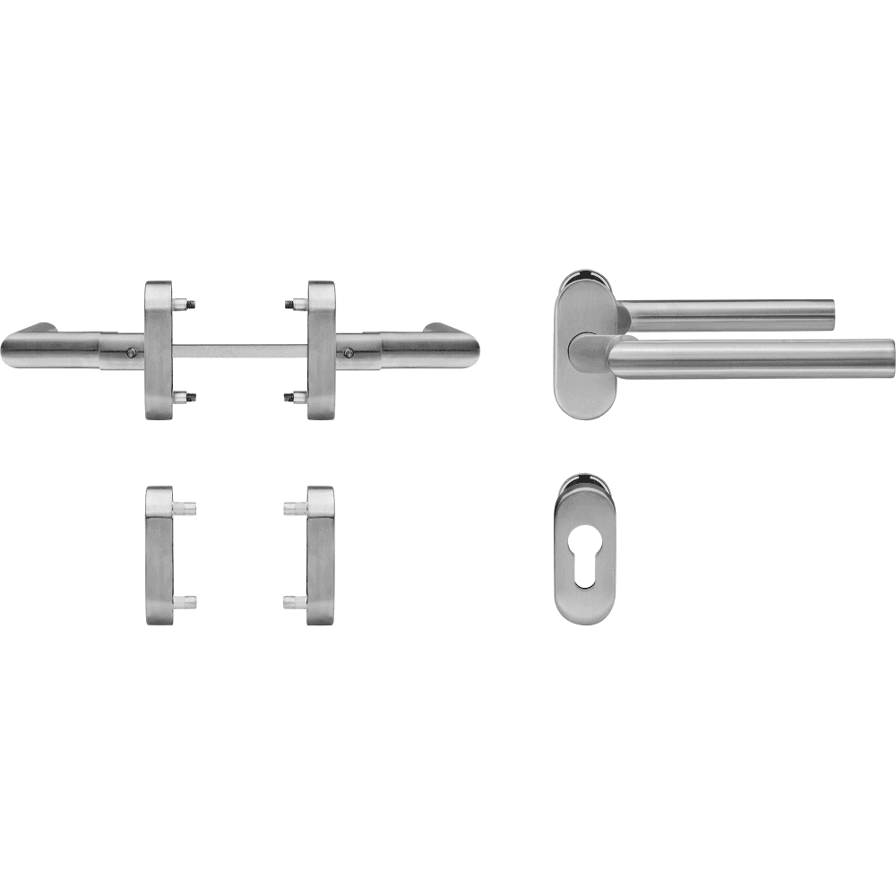 Klamka drzwiowa 90°-Form gekröpft klasa 4 na owalnej rozecie 1/2 kpl – stal szlachetna