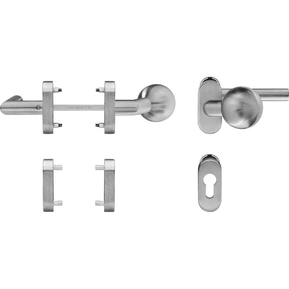 Klamka drzwiowa 90°-Form/gałką klasa 4 na owalnej rozecie TS65-88mm – stal szlachetna