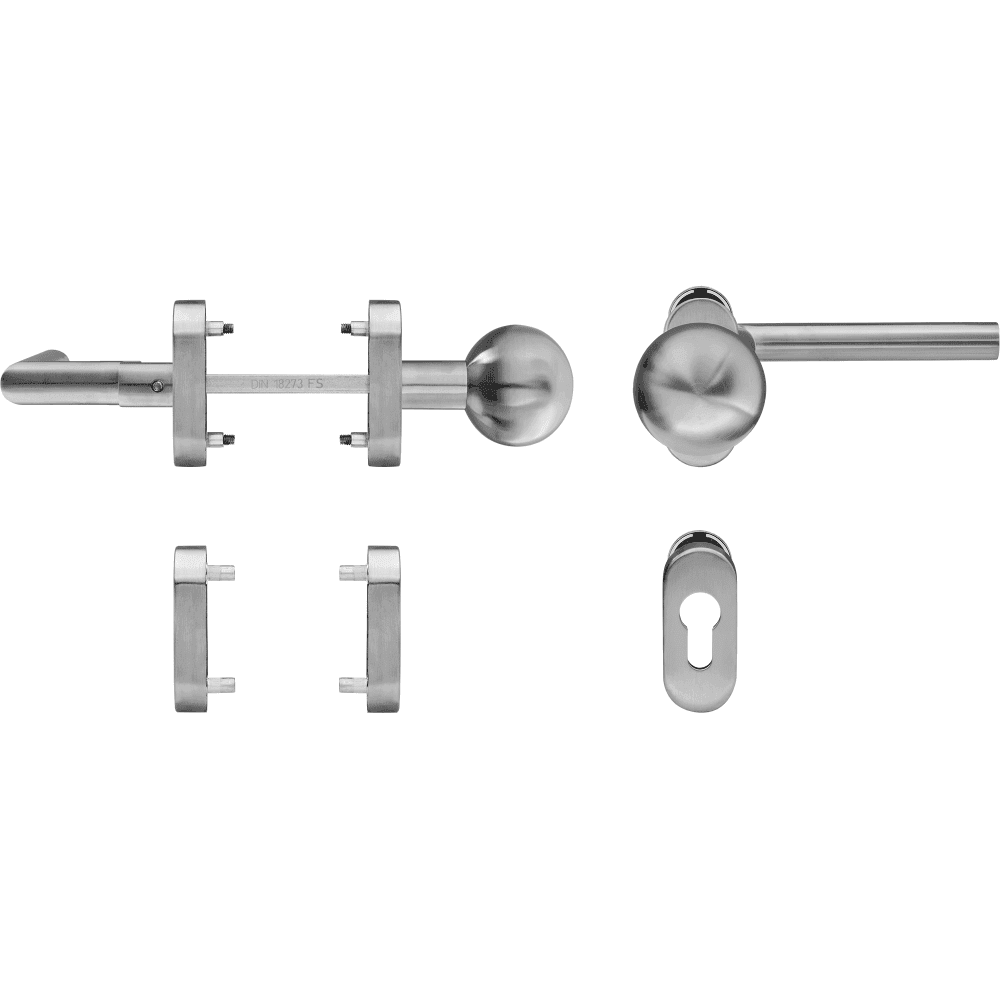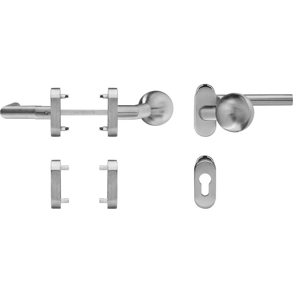 Klamka drzwiowa 90°-Form gekröpft ochrona przeciwpożarowa na owalnej rozecie 1/2 kpl – stal szlachetna